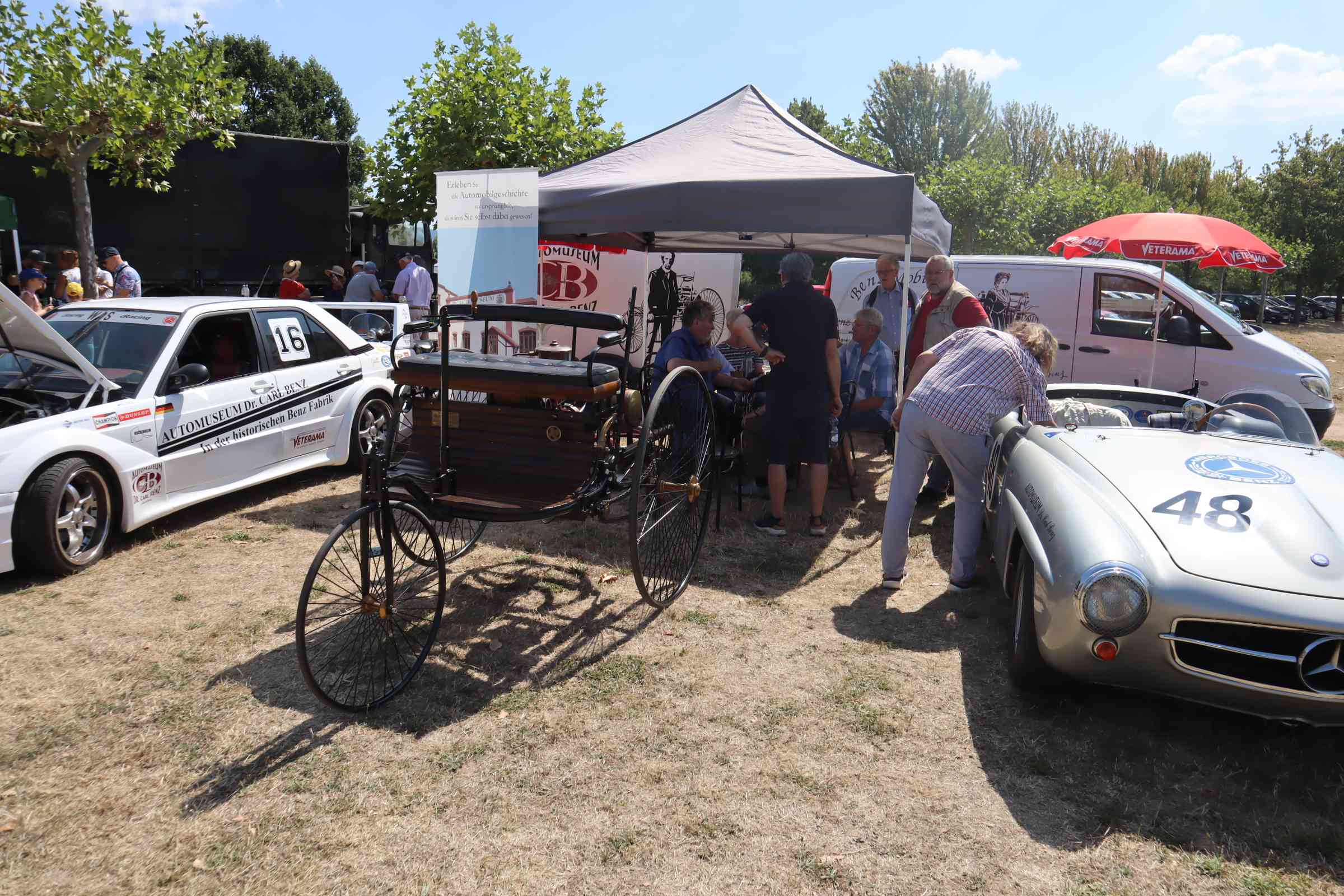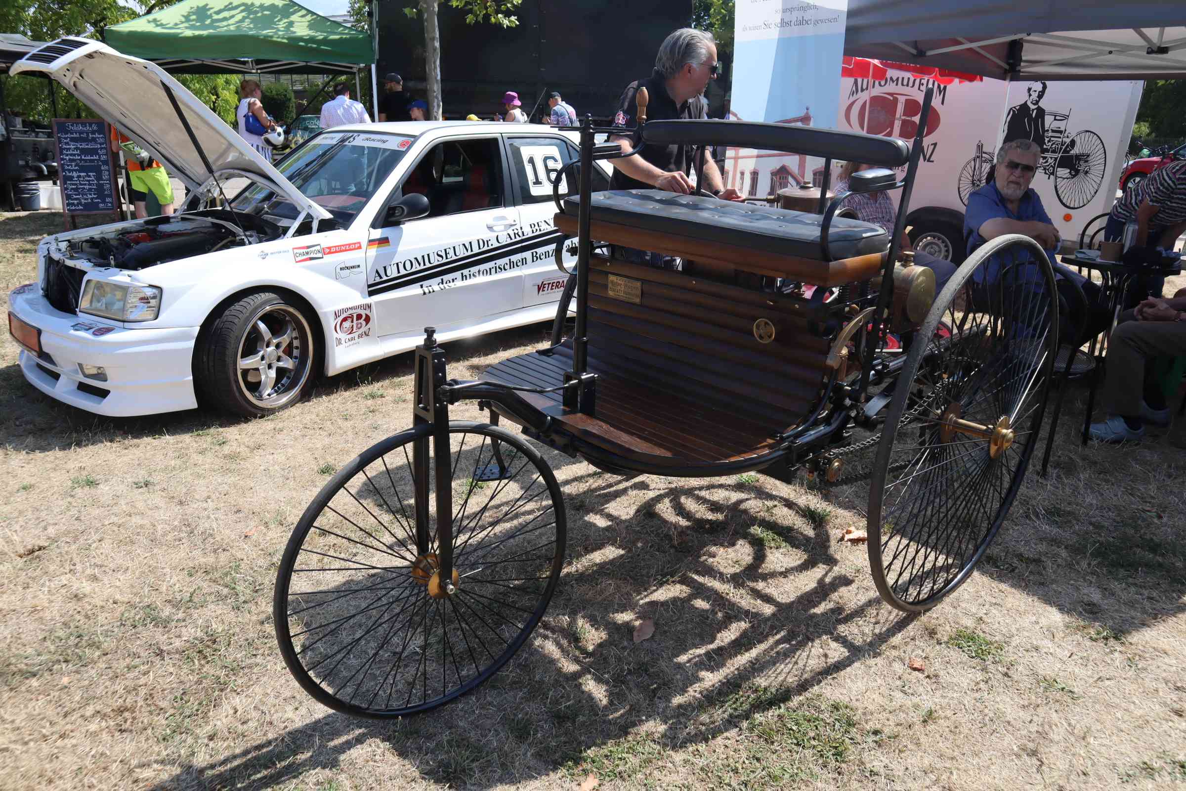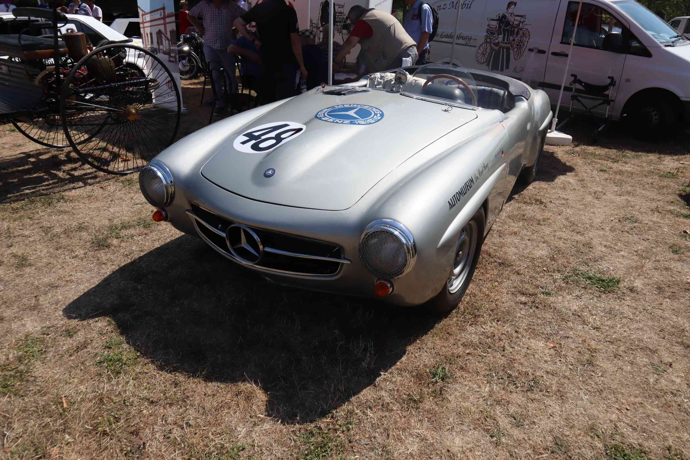 Den eben erwähnten Benz Patentmotorwagen Nr. 1, der viele Teilnehmer des 106. Treffens auch mit seiner Dynamik begeisterte, den Renn-SL aus 1957, der deutlich früher zu hören als zu sehen war und schließlich die Replika eines DTM-190ers aus der jüngeren Rennsportgeschichte der Marke mit dem Stern.