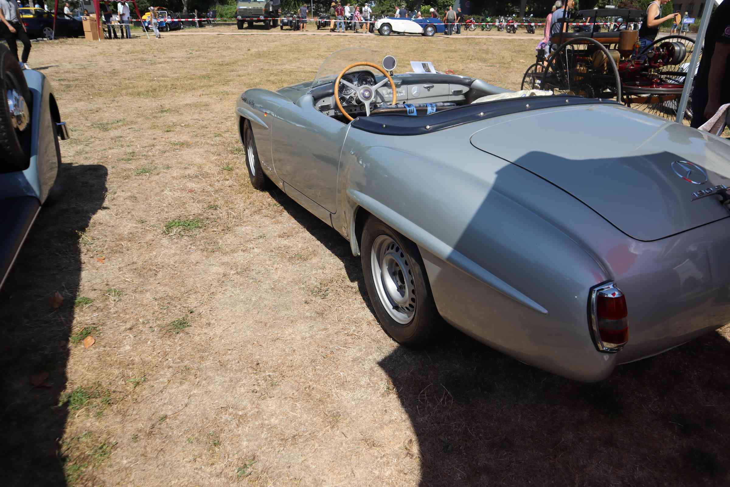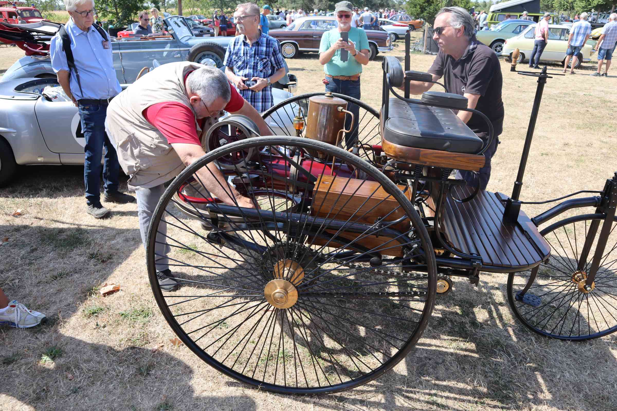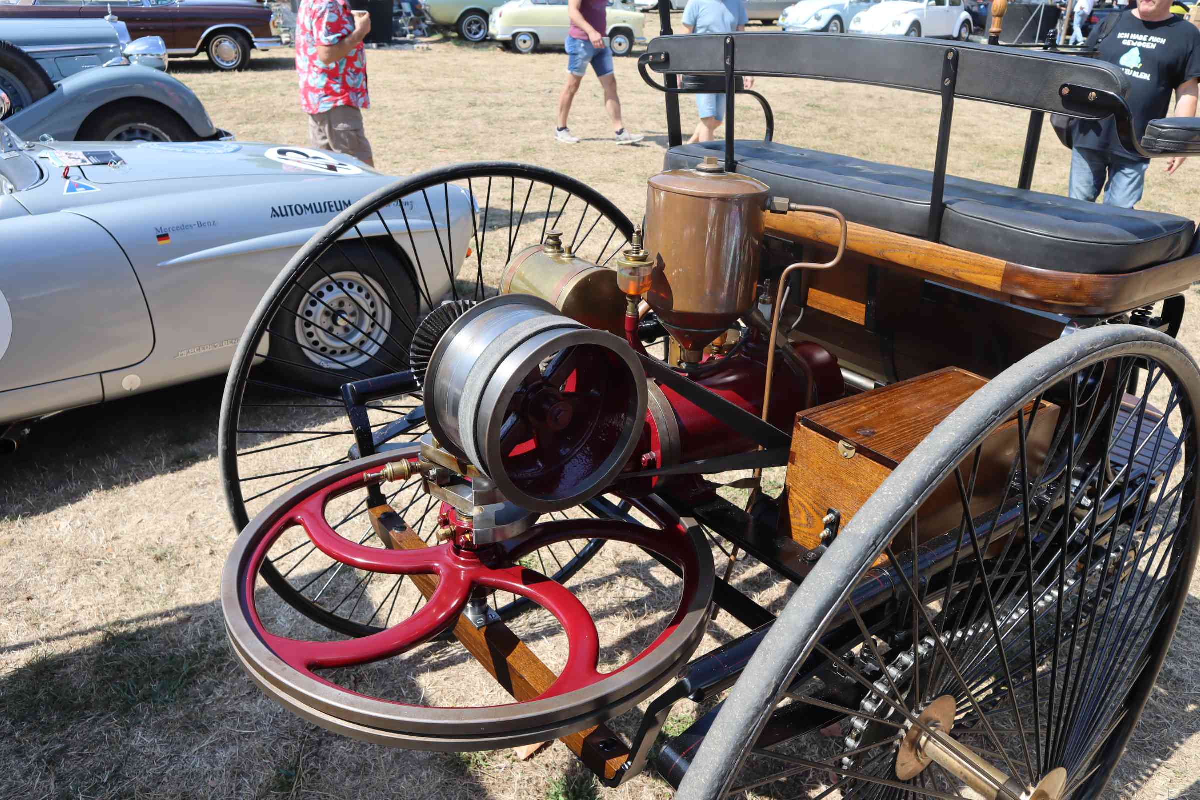 Den eben erwähnten Benz Patentmotorwagen Nr. 1, der viele Teilnehmer des 106. Treffens auch mit seiner Dynamik begeisterte, den Renn-SL aus 1957, der deutlich früher zu hören als zu sehen war und schließlich die Replika eines DTM-190ers aus der jüngeren Rennsportgeschichte der Marke mit dem Stern.