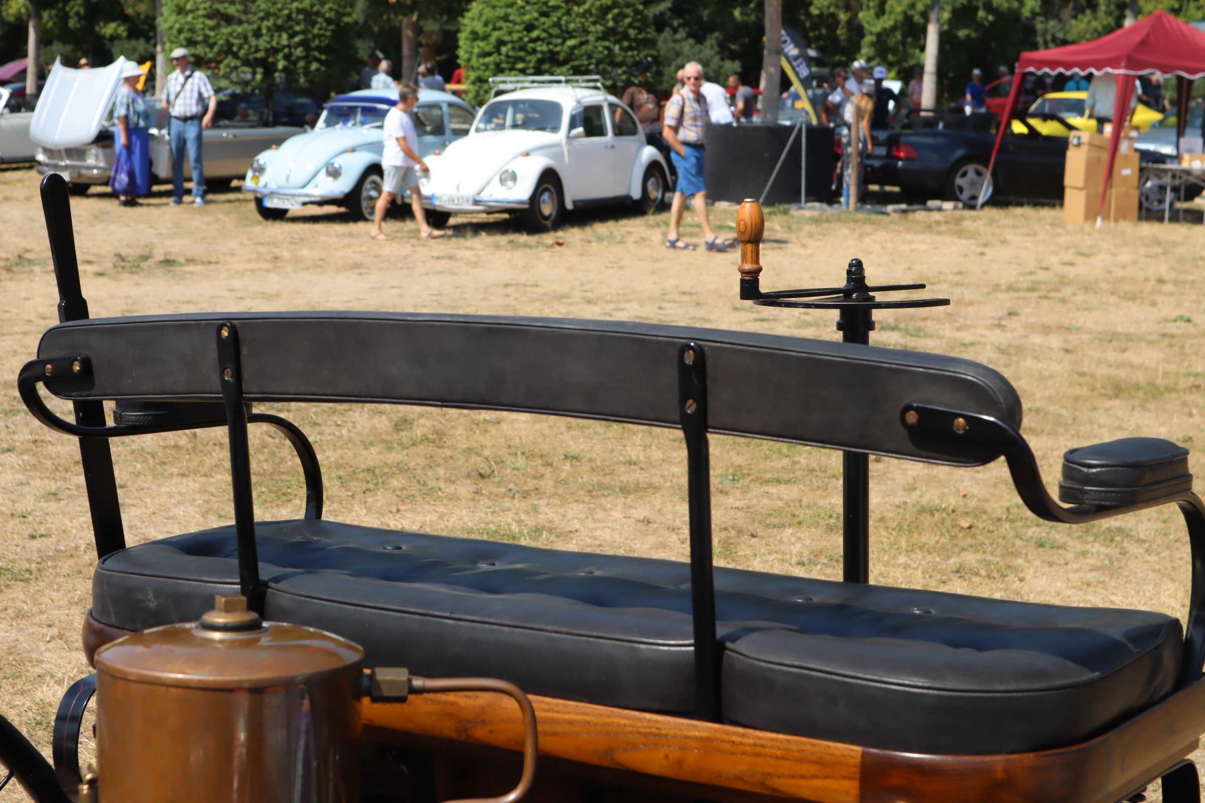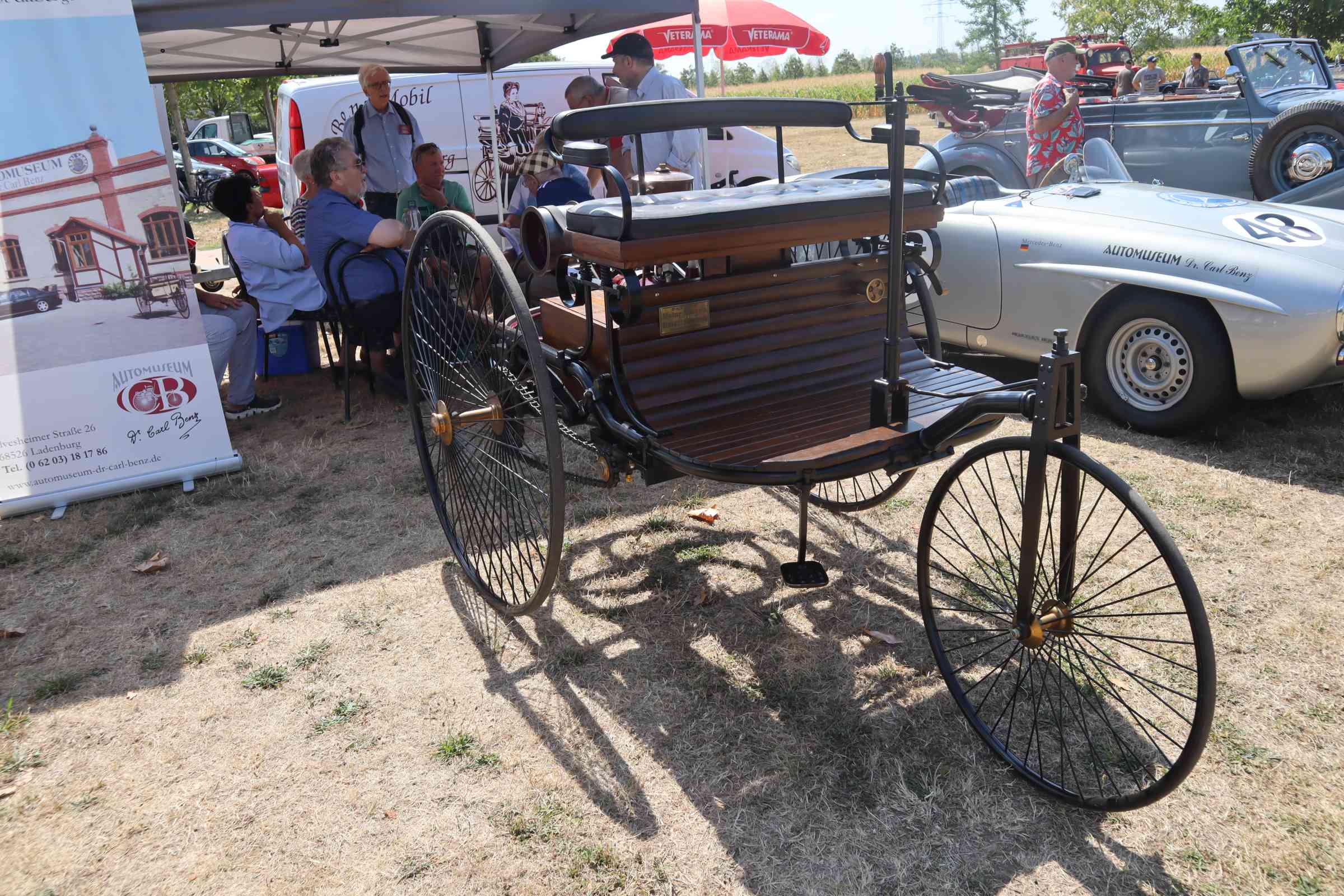 Das war überwältigend: Der Benz Patentmotorwagen Nr. 1 und dazu seine „Kinder“ und „Kindeskinder“ in einer Zahl, wie wir sie – so glauben wir wenigstens – bisher noch nie „auf dem Hof“…, also dem Rosenhof… 😊 hatten.