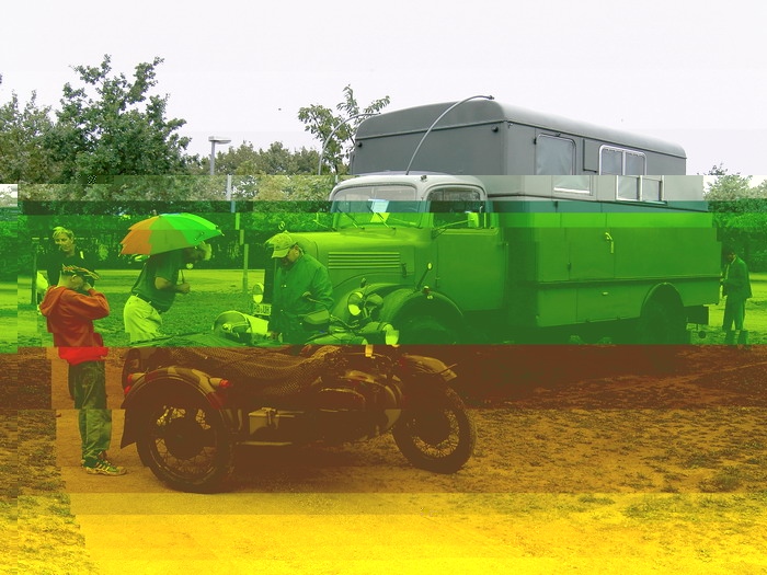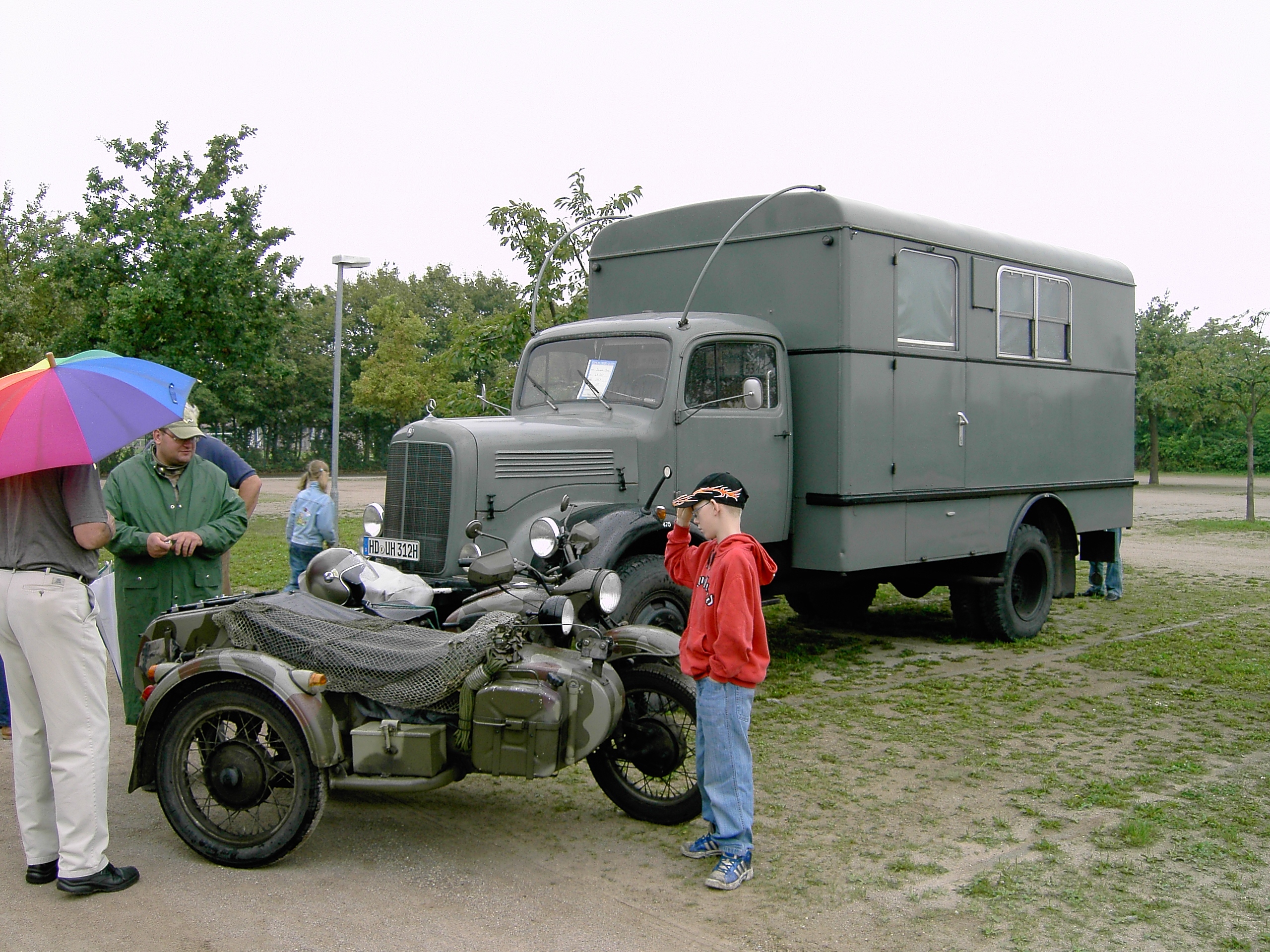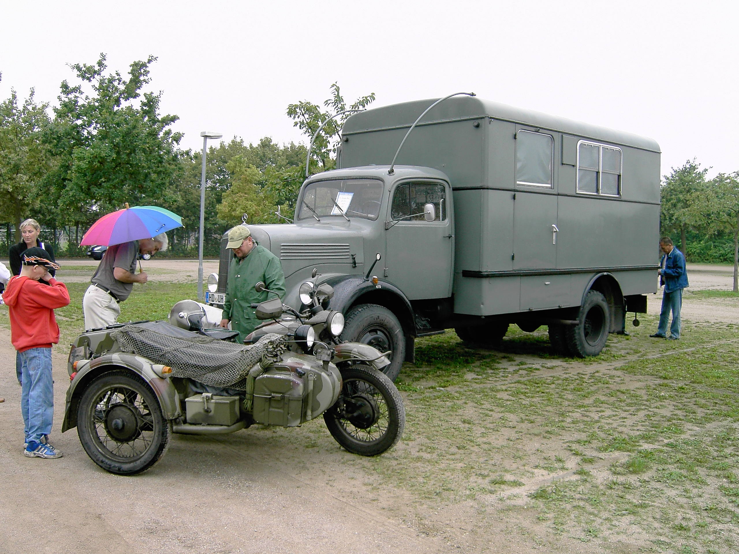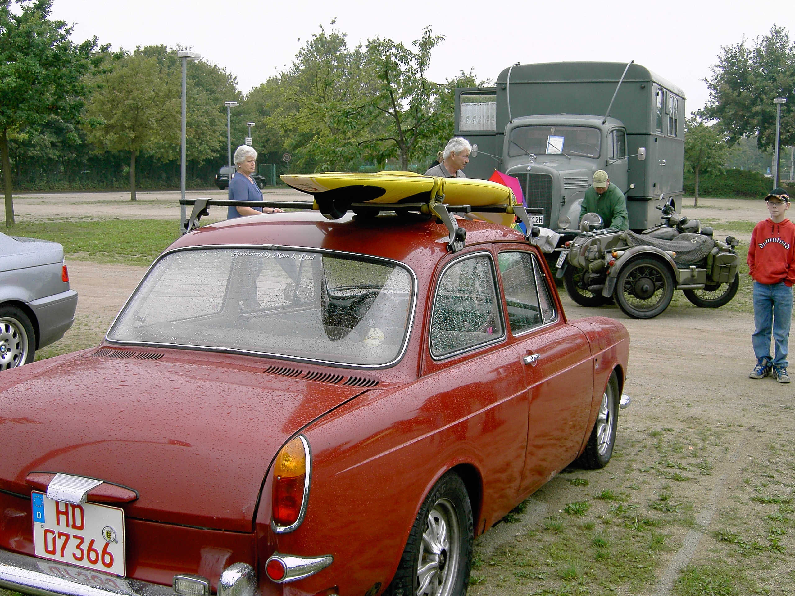 Das Ural-Motorradgespann (ein russischer BMW-Nachbau) in unmittelbarer Nachbarschaft eines traumhaften Mercedes 280 SE Cabriolet, ein äußerst seltener Opel Corsa Spider im Plausch mit BMW 700, VW 1600 und Citroen Dyane. Der beeindruckende, ehemalige Post-LKW (ein herzliches Dankeschön der Besitzerfamilie, die den großen Laderaum als Unterstand zur Verfügung stellte) und verschiedene Vertreter der Mercedes Mittelklasse aus den 70er und 80er Jahren rundete das Bild ab.